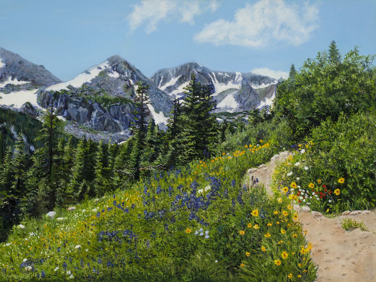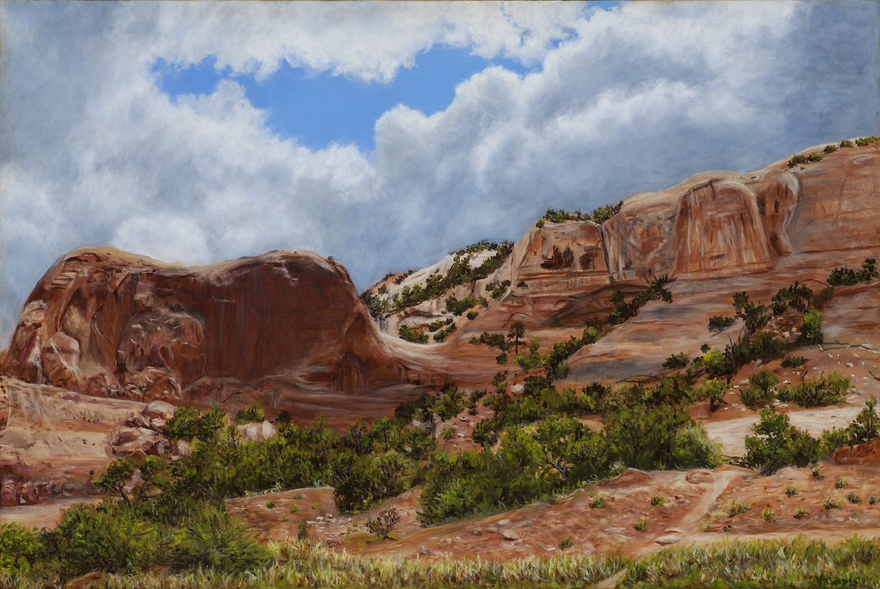 Beginning to want to capture what she was seeing she tried photography, with a very small idea that someday she would like to paint. Eventually when she retired she tried painting, first with pastels, then with acrylics, and eventually oils.
